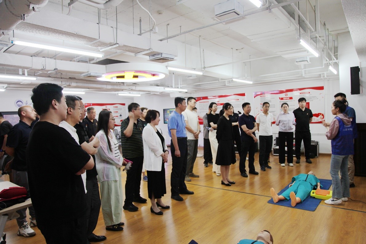 现场由专业培训指导教师依次进行心肺复苏法、海姆立克急救法的方式教学,并模拟火情进行灭火器的选择和实操演练。现场还配有VR体验区,党员们通过VR眼镜可以了解不同生活场景中的安全注意事项。全体党员在学习后,有序开展各个项目实操演练,在重复练习中体验、学习各类安全救援设施的使用方法。