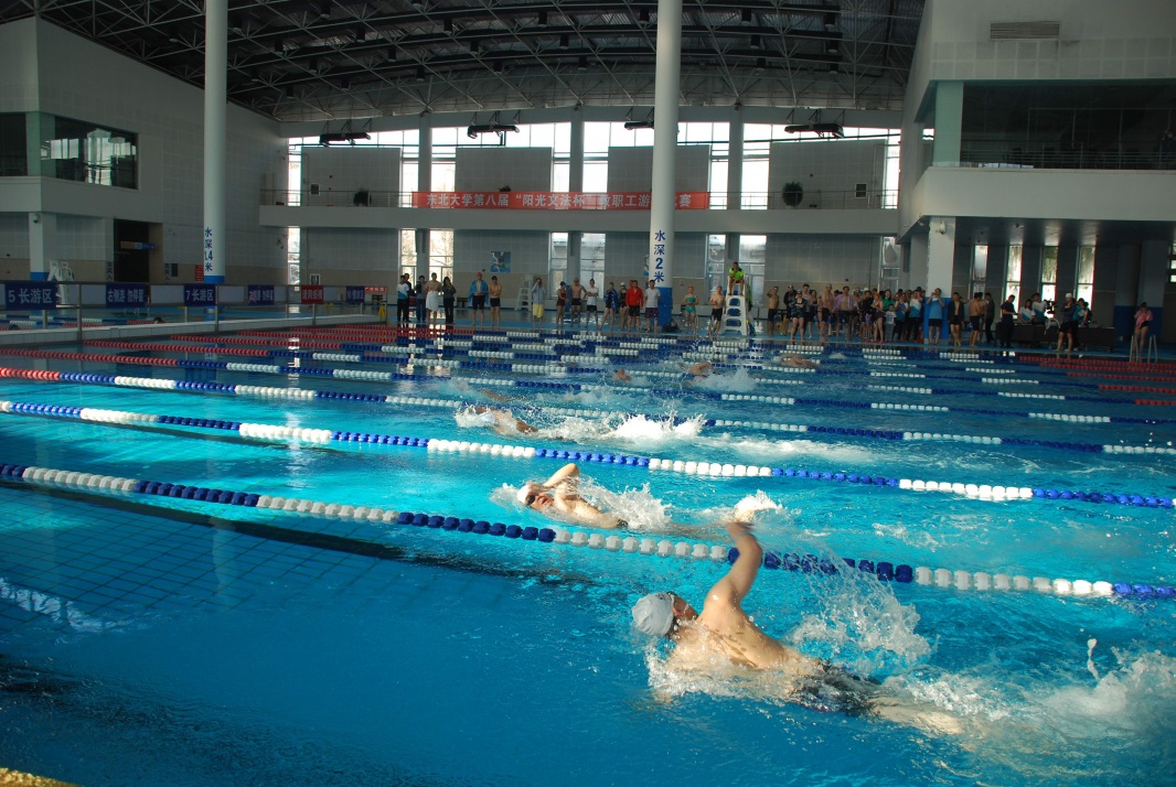 团体赛共9个分工会参赛,经过激烈角逐,理学院、校机关、信息科学与工程学院摘得冠亚季军。单项赛设蛙泳和自由泳两种泳姿,分青年组和中年组分别举行。经过激烈比拼,孙贺楠、樊实获得蛙泳比赛青年组冠军;谷文生、曾凯获得蛙泳比赛中年组冠军;朱庆丰、胡丹丹获得自由泳比赛青年组冠军;于晓东、罗燕获得自由泳比赛中年组冠军。