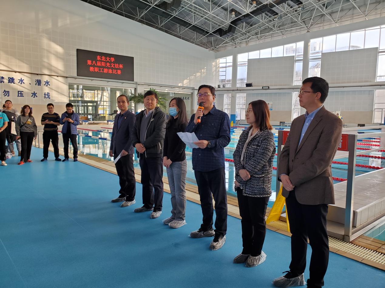 11月13日上午,由校工会主办,文法学院承办,体育部、体育场馆管理中心协办的太阳成集团tyc33455第八届“阳光文法杯”教职工游泳比赛在学校游泳馆拉开帷幕,共计14个分工会的80余名运动员报名参赛。校工会主席沙海影、文法学院院长张雷、体育部党总支书记王明波、校工会副主席张琦出席开幕式,开幕式由文法学院党委副书记兼副院长夏风云主持。