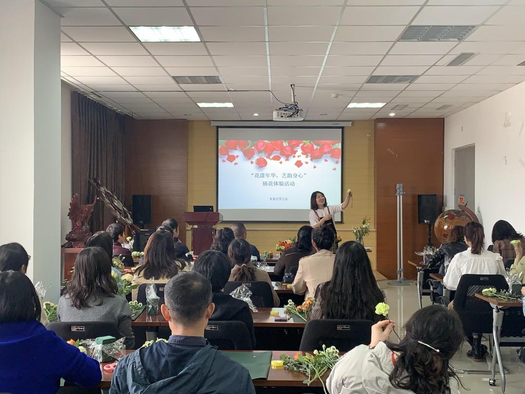 4月15日中午,校工会在浑南校区生命学馆A207会议室举办“花漾年华,艺韵身心”插花体验活动,共有30余名教职工参加活动。